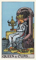 | Je huidige bewuste instelling : Bekers Koningin Je bent, kent of komt in aanraking met een zuiver gevoelsmens. Intuïtief en zeer liefdevol, behulpzaam, dromerig en wijs. |