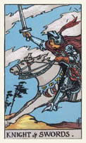 | De geadviseerde opstelling naar buiten toe : Zwaarden Ridder Je volledige focus is gericht op het bereiken van je doel. Je gooit alles in de strijd wat je hebt en dat is veel, je charmes, je intelligentie, je kracht en wat je verder maar kunt aanwenden, maar wat is de prijs van deze storm en drang? En wie moet die betalen? Kun je nog wat afstand nemen van jezelf om het slagveld om je heen te overzien? Of is dit een noodzakelijk kwaad? |